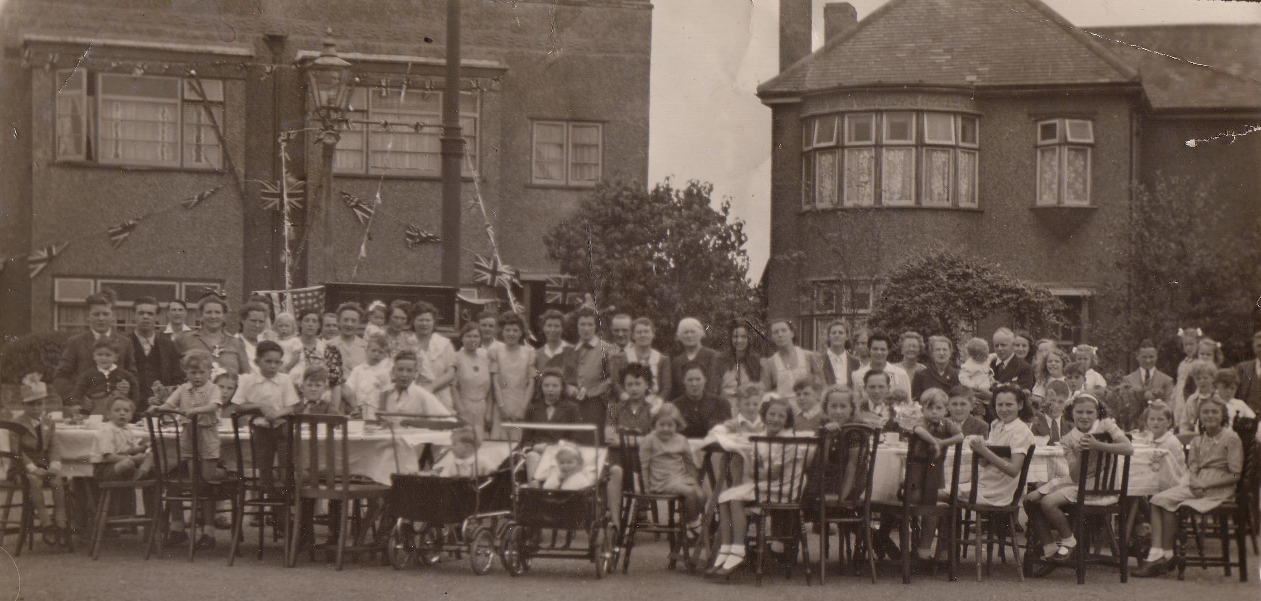 This was a VE day party in Finden Gardens, Rainham Essex. My dad lived in number 28